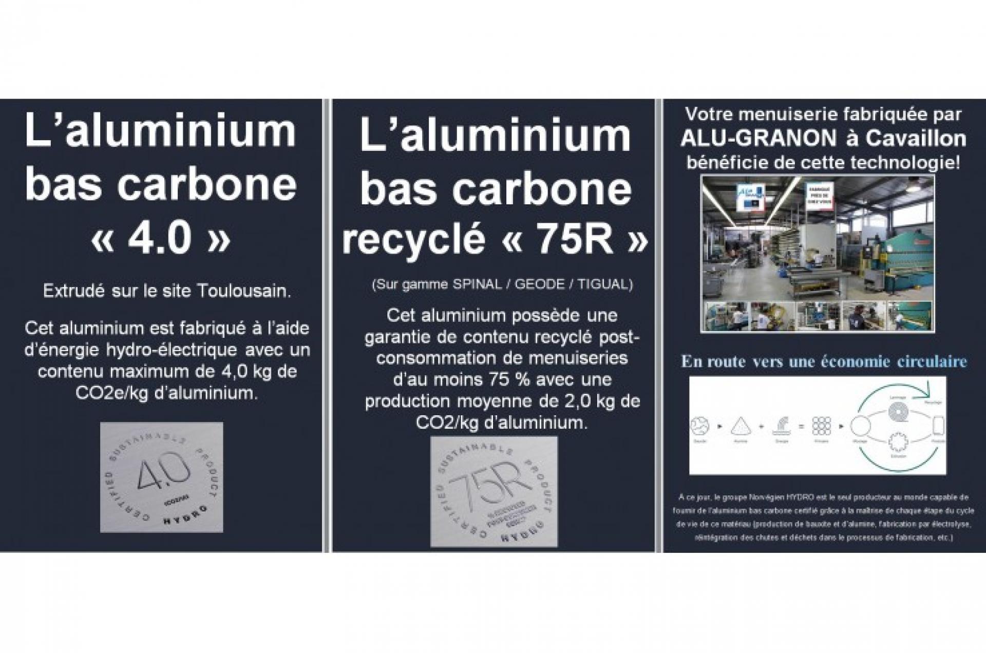 - L’aluminium bas carbone recyclé « 75R ». (sur gamme SPINAL / GEODE / TIGUAL)